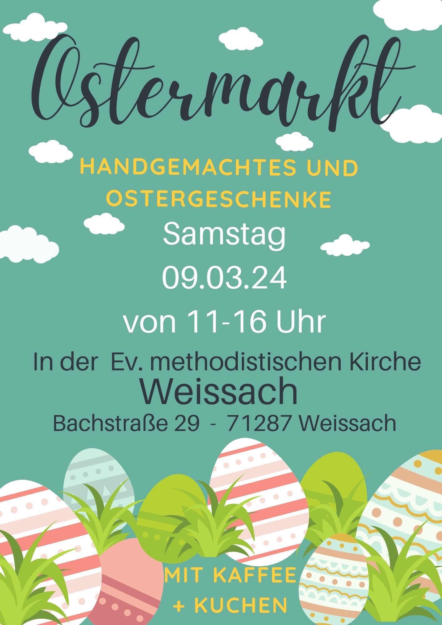 Verkauf von Handgemachtem, Ostergeschenken und Kaffee und Kuchen