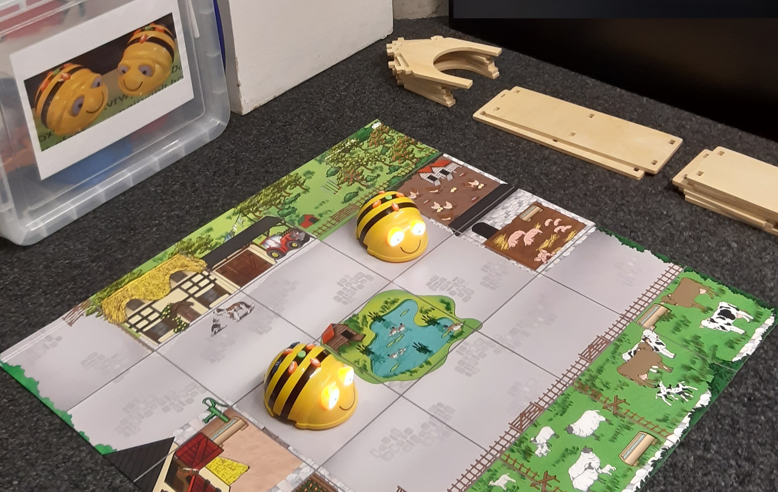 die Welt der Bee-Bots entdecken: kleine, einfach zu programmierende Lernroboter, Anmeldung erforderlich.