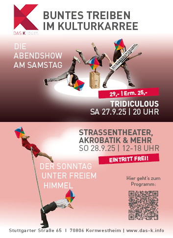 am 27.9 eröffnet das preisgekrönte Trio Tridiculous mit Comedy, Akrobatik & Musik, am 28.9. Straßentheater auf dem Marktplatz – mit Shows, Mitmachspaß & freiem Eintritt!