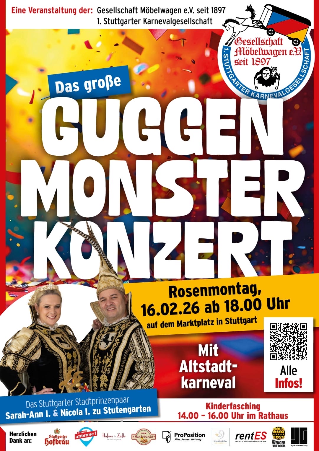 11 Guggenbands aus Süddeutschland und der Schweiz bringen den Stuttgarter Marktplatz zum Beben.